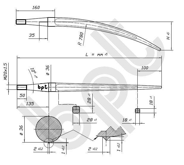 Illesztés: kúpos, M20 menettel, kúpos anyával