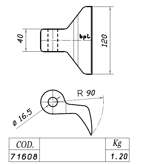 Kovácsolt acél lengő kalapácskés szárzúzókhoz, rézsűzúzókhoz.