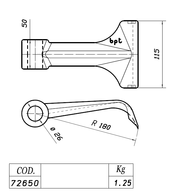 Kovácsolt acél lengő kalapácskés szárzúzókhoz, rézsűzúzókhoz.