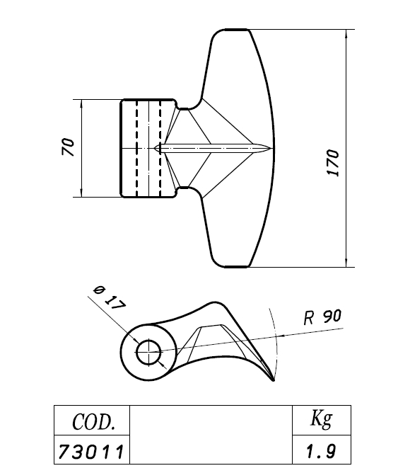Kovácsolt acél lengő kalapácskés szárzúzókhoz, rézsűzúzókhoz.