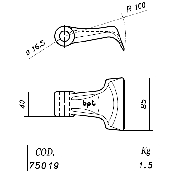 Kovácsolt acél lengő kalapácskés szárzúzókhoz, rézsűzúzókhoz.