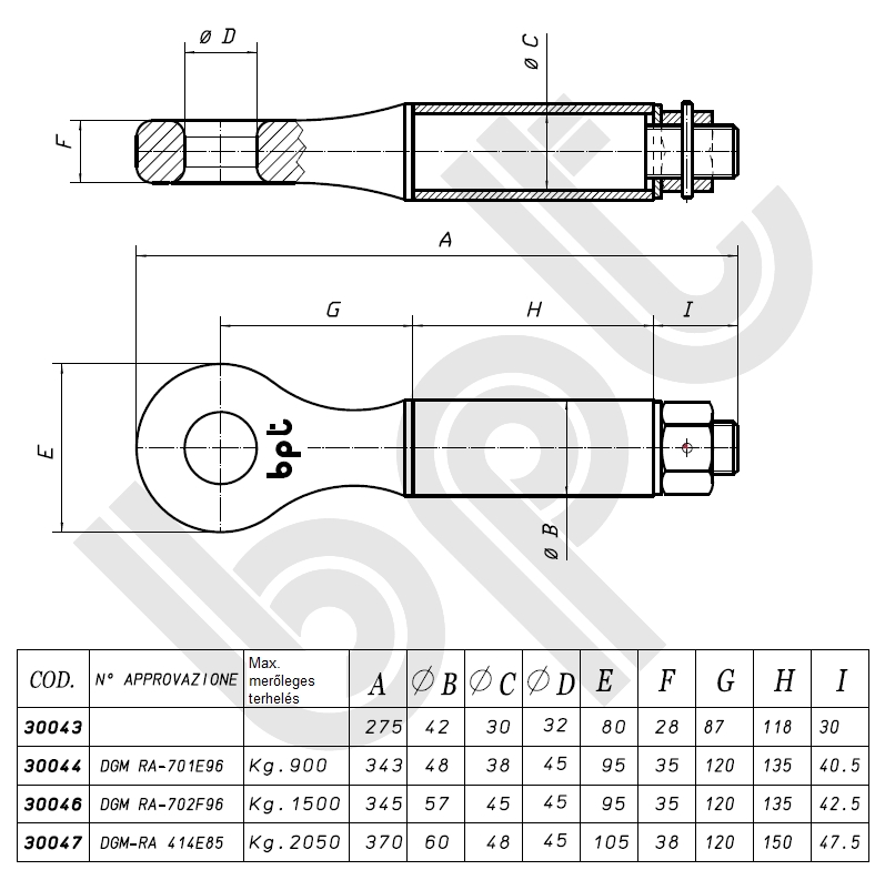 Csatlakoztatás: hegeszthető persely, menetes anya, biztosítószeg