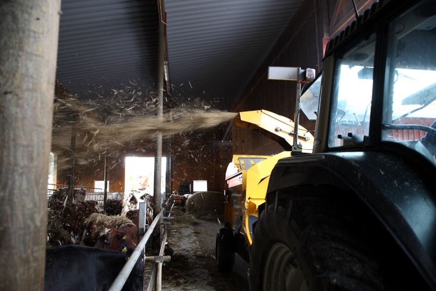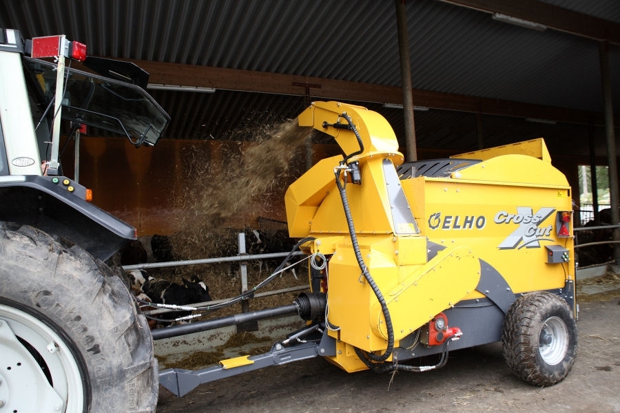 Vontatott bálabontó-aprító kiosztókocsik, kis és közepes állattartó telepek részére.
