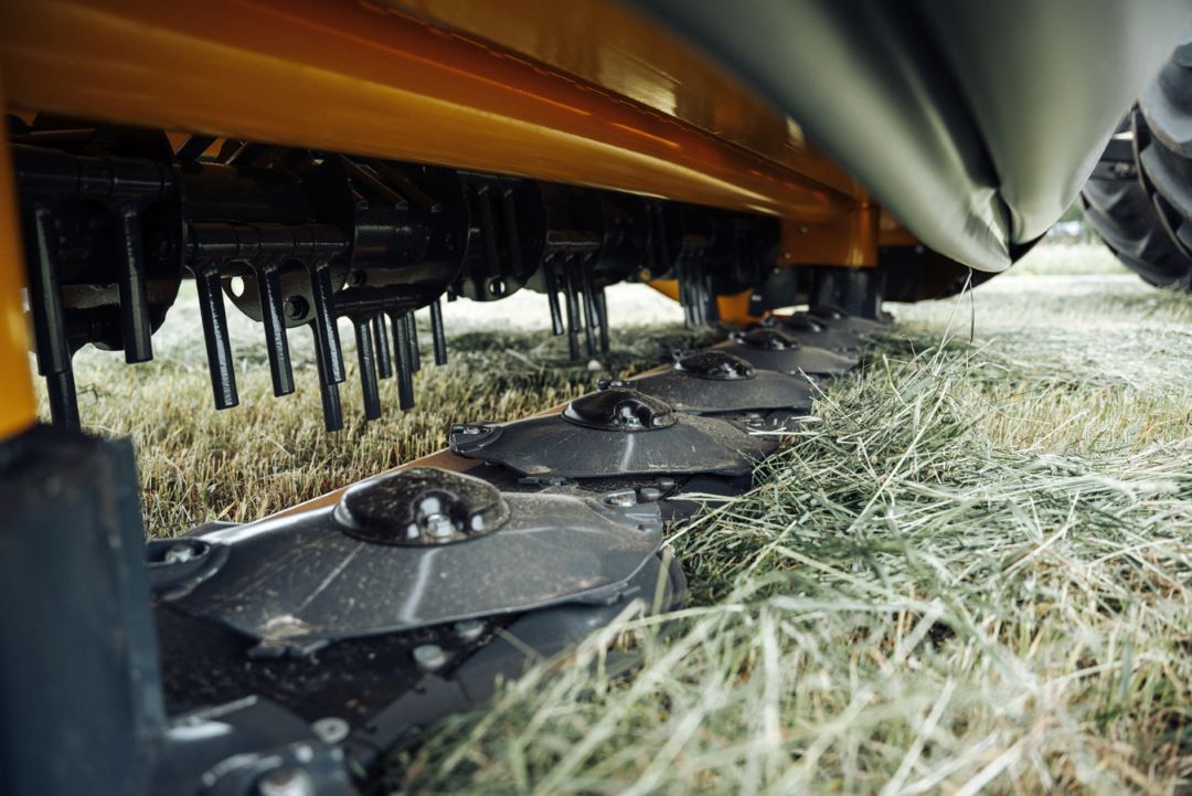 Az új fejlesztésű hordozókeretnek köszönhetően a vágóegység szállításkor 120 fokban felcsukható igy a gép súlypontja a traktor középvonalába kerül. Emiatt a gép kisebb tömegű traktorokon is használható.