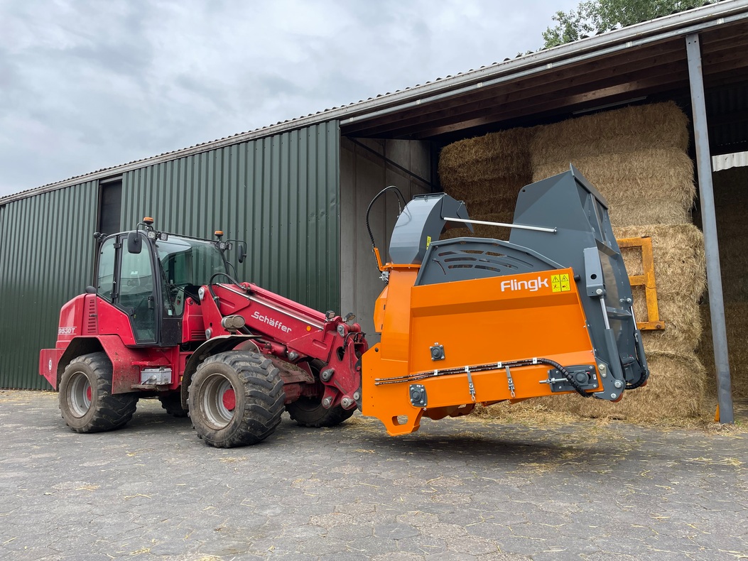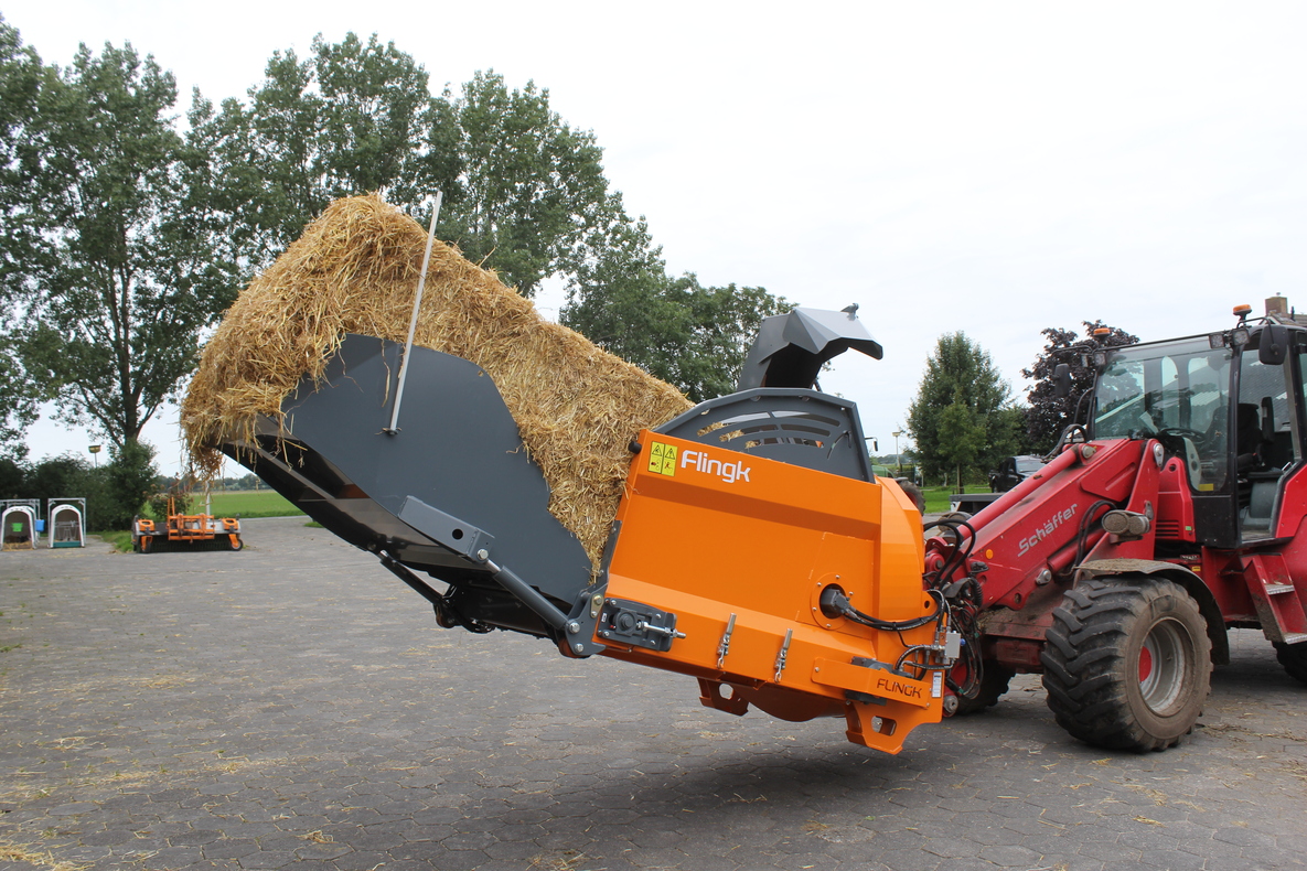A Flingk SH szalmafúvóját a szalmabálák gyors és hatékony kiosztására tervezték. Nagy kapacitással rendelkezik, homlokrakodókhoz vagy teleszkópos rakodógépekhez csatlakoztatható, 5 tonna önsúlytól.