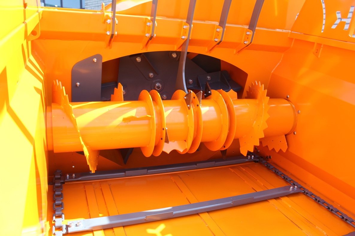 A hidraulikusan meghajtott alsó szállítólánc a bálát a bontóhengerhez tolja. A henger fellazítja a szalmát, és a kifúvóhoz juttatja. A szalmát ellenkések adagolják, ami megakadályozza az eltömődést. A henger és a lánc a kabinból vezérelhető és mozgásuk visszafordítható.