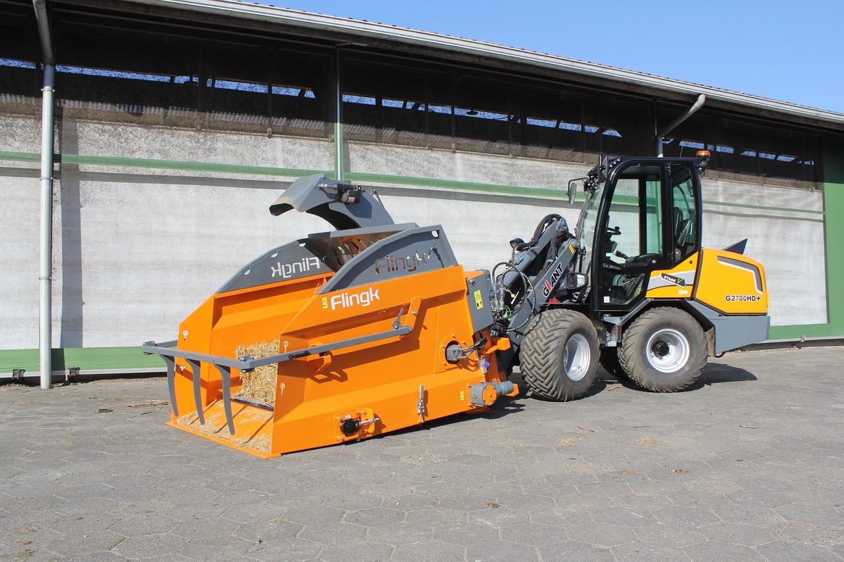A Flingk SHC szalmafúvója egy kompakt és könnyű szalma kifúvógép. A gépet kifejezetten úgy tervezték, hogy kis méretű min. 2500 kg-os kerekes rakodóval vagy kis teleszkópos rakodógépekkel is működtethető. A traktor hátsó 3-pontján is használható használható. hidraulikus felső bekötőkarral kombinálva. A gép kifúvótornya a fülkéből működtathető. A torony 275°-ban forgatható, és egy szeleppel rendelkezik, amellyel a szórási mélység szabályozható. Ez lehetővé teszi a gyors és rugalmas munkavégzést.