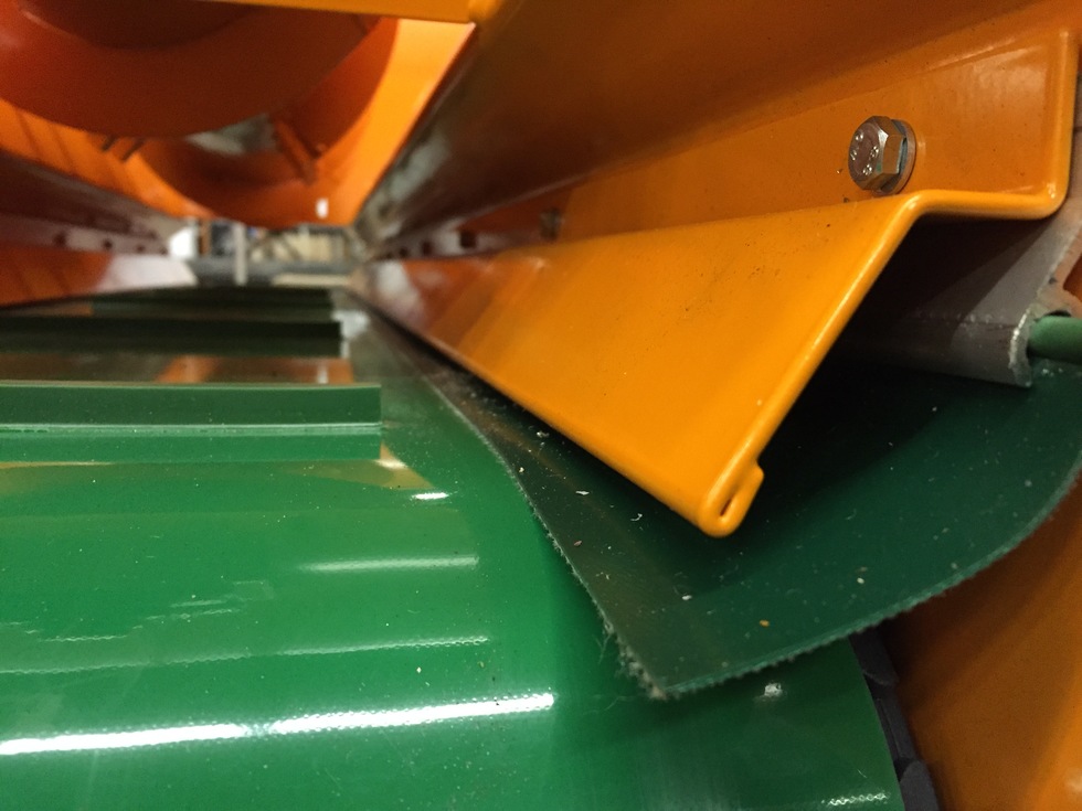 - Nagy teherbírású háromrétegű szállítószalag dupla tömített élekkel és kaparóval