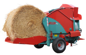 JEULIN Helicut függesztett vagy vontatott kivitelű bálabontó-kiosztók, körbála vagy szögletes bála aprítására-kiosztására.