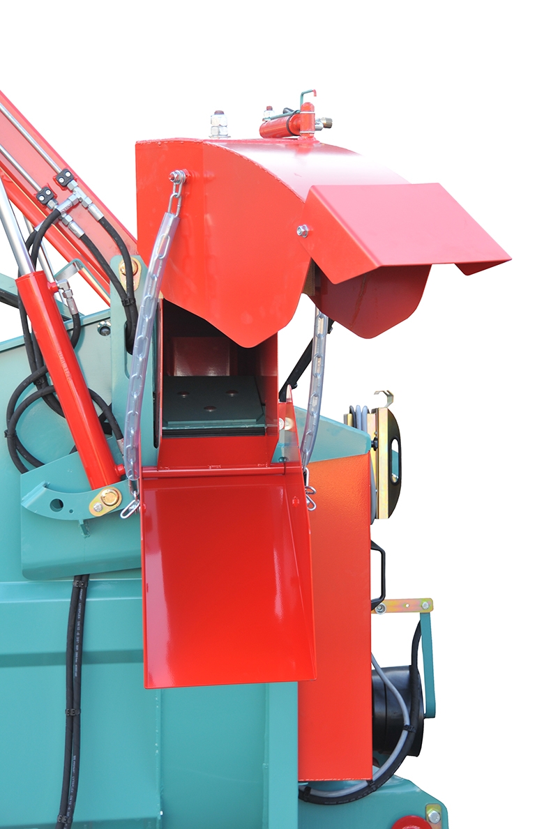 Jobb oldali oldalsó csúszda az almozáshoz és az etetéshez, 1 hidraulikus hengerrel működtetve.