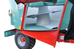 - Hátsó kétoldali kirakodó szállítószalag láncos-léces 0,80 m szélességben - az elülső csapóajtót megszünteti.