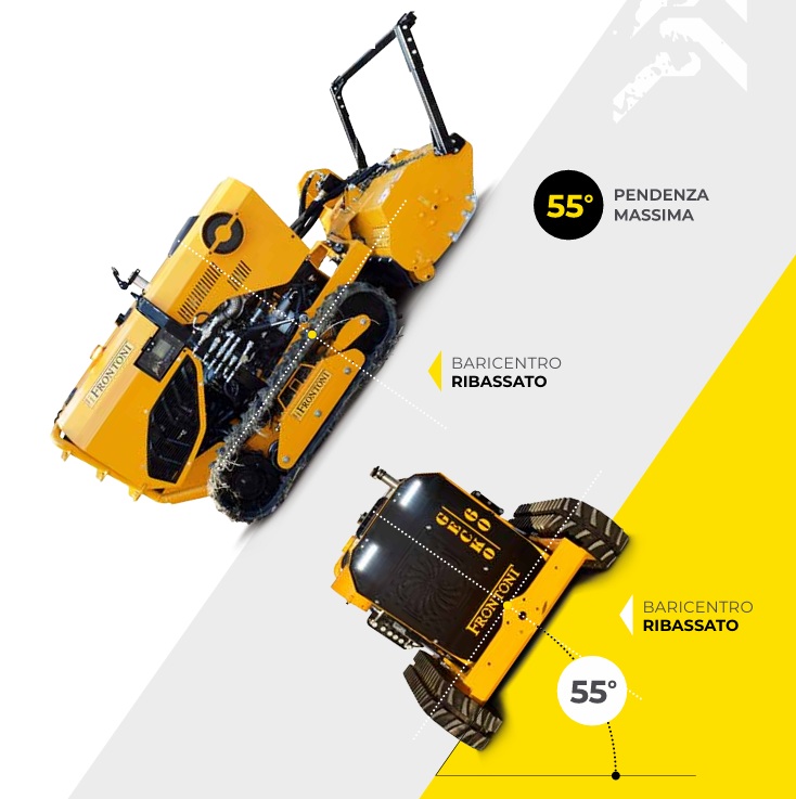 rádiótávvezérléssel távolról vezérelhető, így a professzionális kezelők a legnehezebb, akár 55°-os lejtésű környezetben is dolgozhatnak.